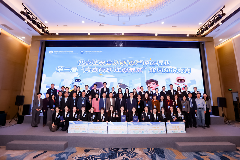 2025年12月7日,由北京注册会计师协会、北京资产评估协会主办的第三届“青春有梦 注资未来”校园知识竞赛决赛在京成功举办。本届竞赛自启动以来,吸引了来自全国高校的4000余名学子踊跃报名,规模再创新高,充分彰显了行业日益扩大的社会影响力与人才吸引力。经过线上初赛选拔,最终来自中国人民大学、中央民族大学、中国矿业大学(北京)、北京工业大学、首都经济贸易大学、北京工商大学、天津财经大学、河北经贸大学的8支高校代表队脱颖而出,会师总决赛。北京“两师”行业党委常务副书记、北京注册会计师协会副会长、北京注(评)协秘书长刘军,副秘书长黄杰,全面深化改革委员会办公室副主任章海凤等领导出席活动。来自会计师事务所、资产评估机构,以及非执业会员专家库、多所院校师生代表等200余人莅临现场观赛。