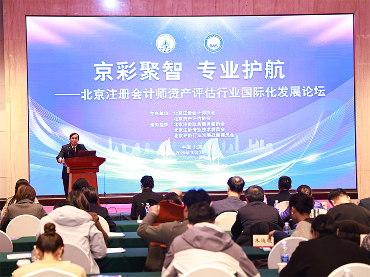 2025年10月28日下午,北京注册会计师协会与北京资产评估协会主办的“京彩聚智 专业护航——北京注册会计师资产评估行业国际化发展论坛”在京成功举办。本次论坛旨在深入贯彻党中央、国务院和北京市委、市政府关于建设贸易强国、扩大服务业开放、高质量共建“一带一路”的重大部署,立足首都城市战略定位,充分展现北京注册会计师、资产评估行业(以下简称“两师”行业)在服务国家和首都高水平开放中的突出贡献,分享助力中国企业“走出去”的有益经验,搭建广泛合作平台,推动北京“两师”行业迈向国际化发展新高度。